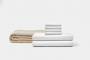 ●Bundle Contains 1 Percale Bedsheet Set & 1 Cotton Herringbone Blanket